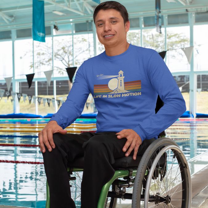 A modern take on a 70s retro design. This long sleeve has a timeless look while reflecting the resilience of those living with Ataxia, rare conditions, or anyone who has learned that life isn’t about rushing. It’s about living with intention.